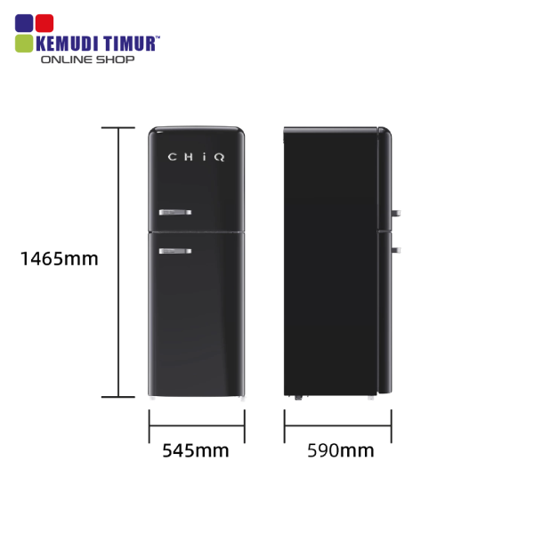 CHIQ FRIDGE 2DOOR 258L INVERTER RETRO DESIGN (BLACK) | CTM202NRBK